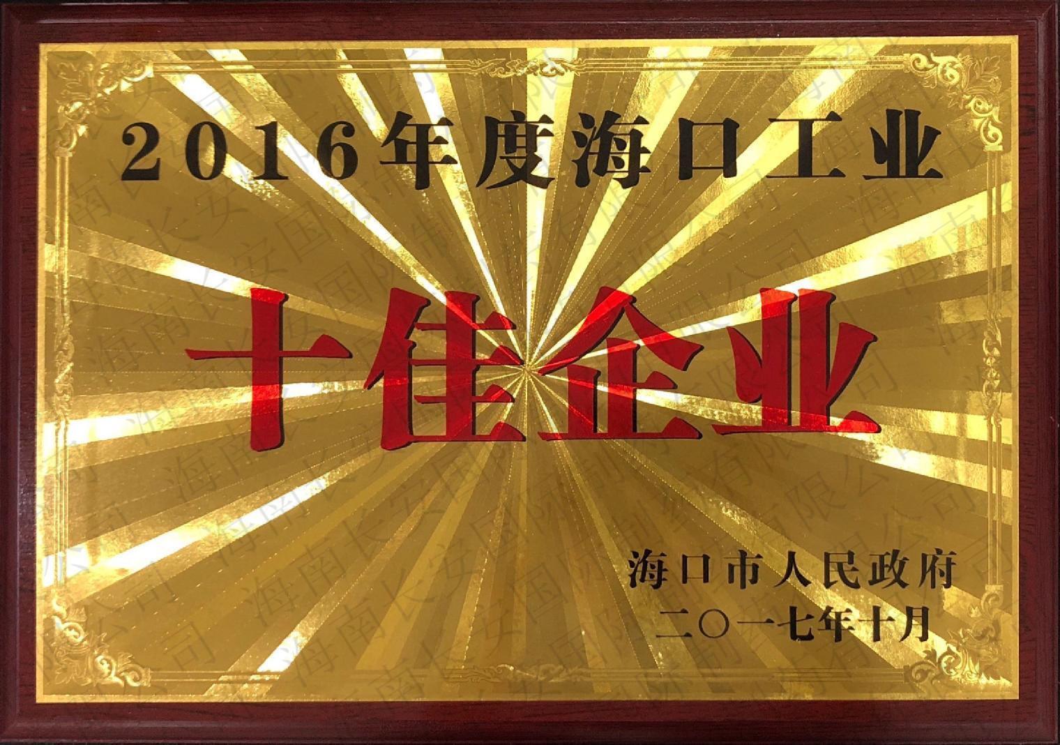 2016年度海口工業(yè)-十佳企業(yè)