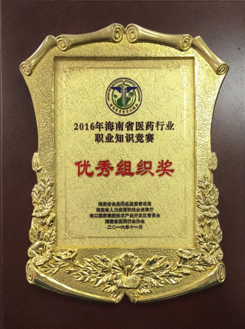 2016年海南省醫(yī)藥行業(yè)職業(yè)知識競賽-優(yōu)秀組織獎
