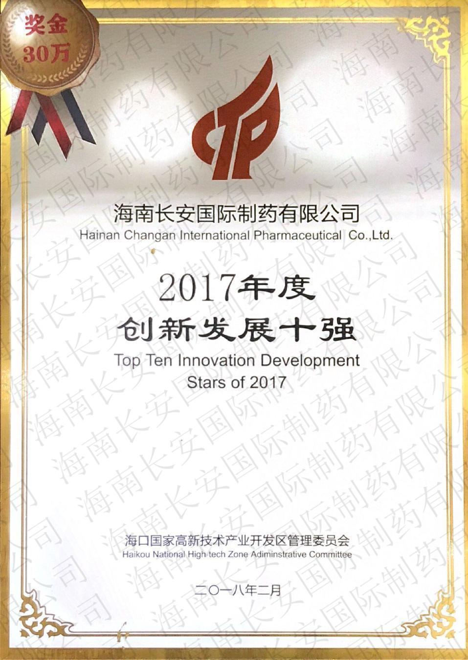 2017年度創(chuàng)新發(fā)展十強