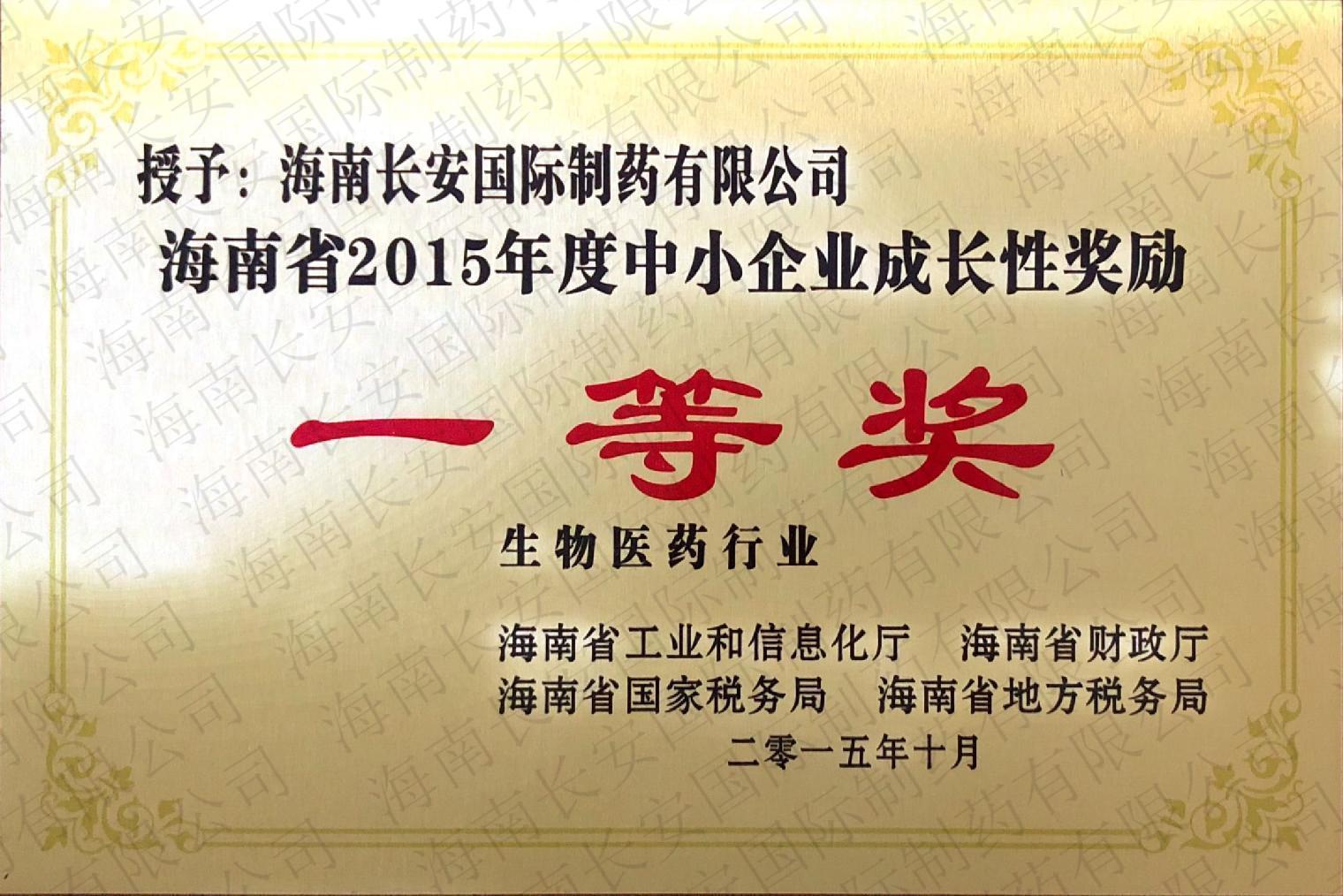 海南省2015年度中小企業(yè)成長性獎勵(生物醫(yī)藥行業(yè))-一等獎