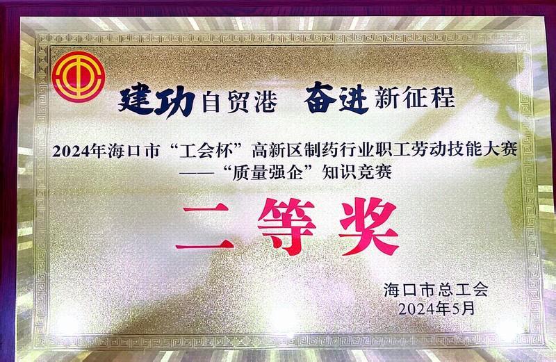 2024年??谑?ldquo;工會杯”高新區(qū)制藥行業(yè)職工勞動技能大賽活動“質量強企”知識競賽--二等獎