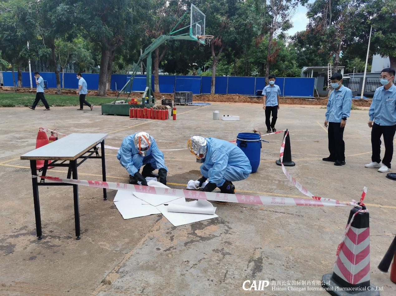 下午15:30,抗腫瘤藥原料合成車間危險化學品泄漏應急演練活動正式開始。接到事故險情報告后,搶險組迅速啟動應急預案,成立事故應急救援指揮部組織救援,控制事故現(xiàn)場。組織搶險隊員對事故進行搶險,對事故現(xiàn)場進行警戒,防止事故繼續(xù)擴大,組織危險區(qū)域內(nèi)的人員迅速撤離疏散,迅速處理事故,對事故現(xiàn)場進行清理。
