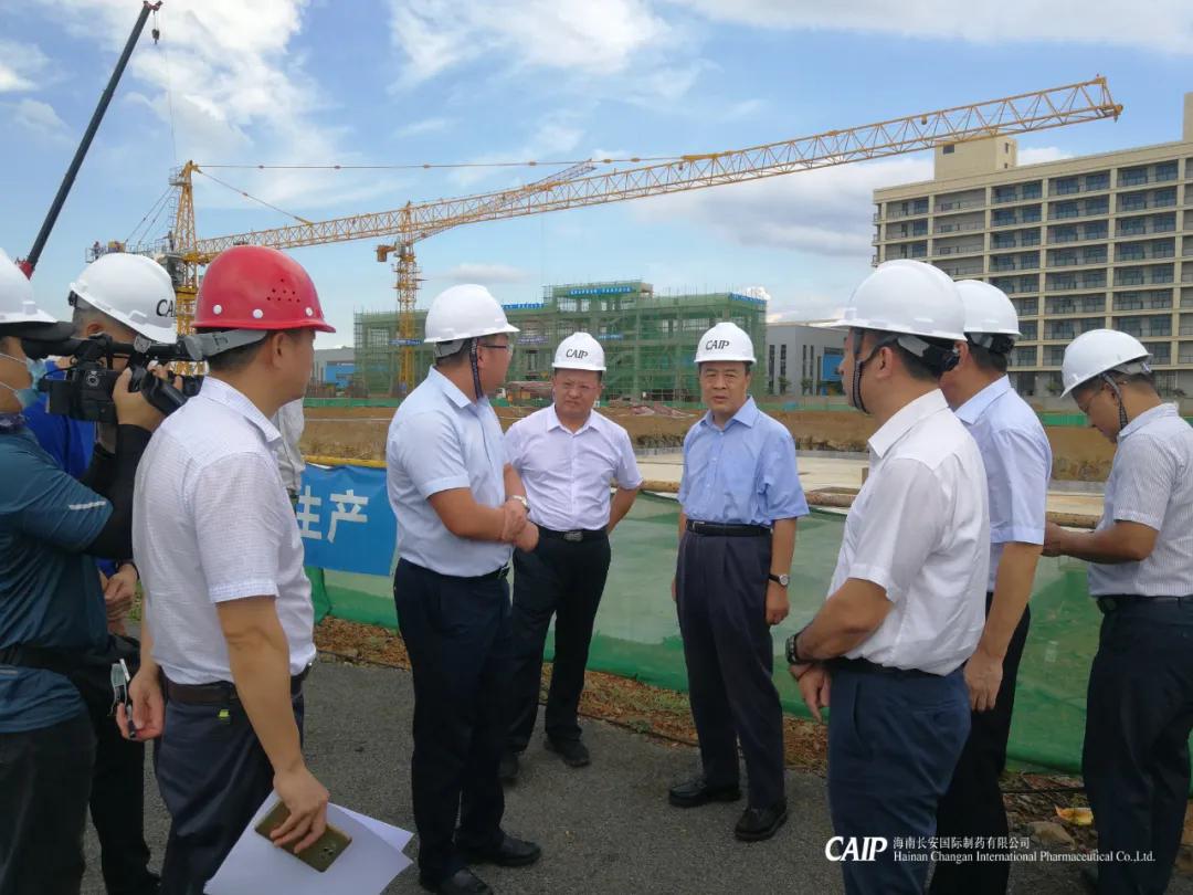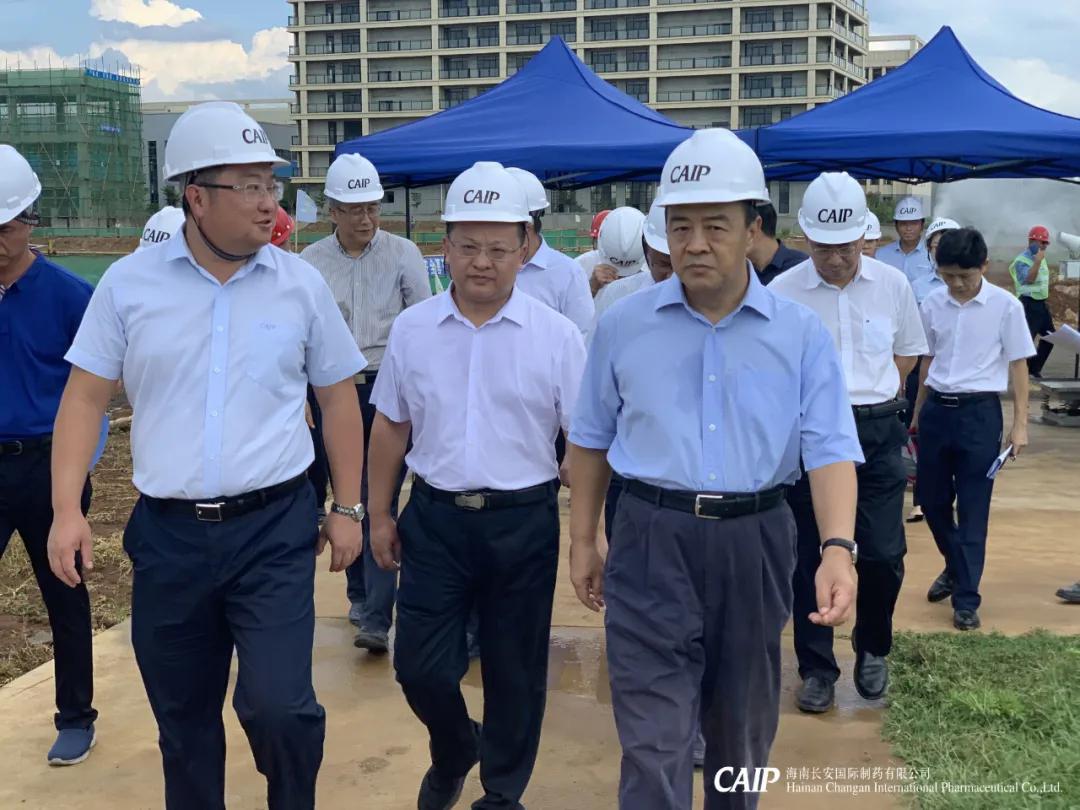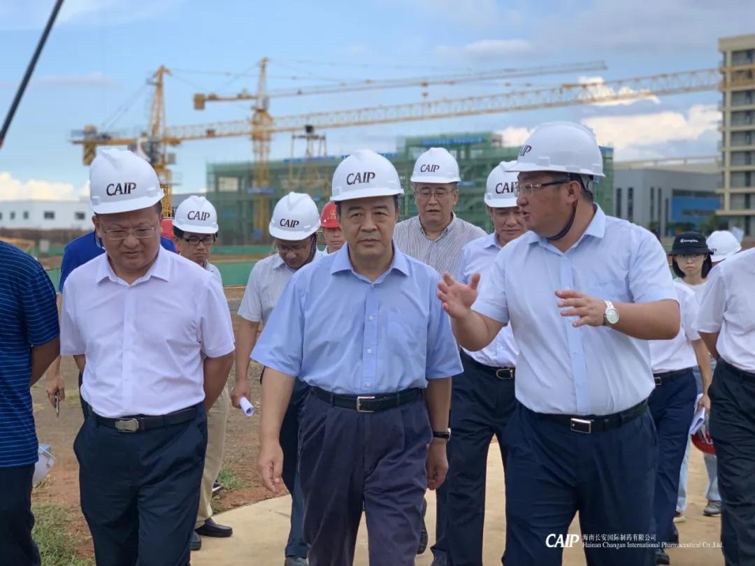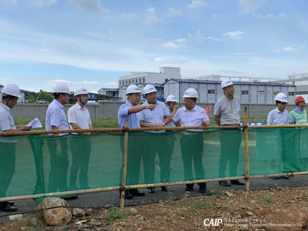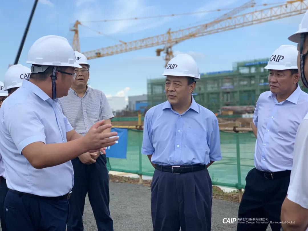 7月22日下午,海南省委常委、常務(wù)副省長毛超峰率調(diào)研組到長安制藥美安科技新城新廠建設(shè)項目調(diào)研項目建設(shè)推進情況。??谑形N?、副市長鞠磊,省發(fā)改委、工信廳、住建廳等相關(guān)單位領(lǐng)導及高新區(qū)管委會主任劉立武等一同參加調(diào)研活動,海南長安制藥總經(jīng)理汪立冬陪同調(diào)研組并詳細介紹美安新廠項目建設(shè)情況。