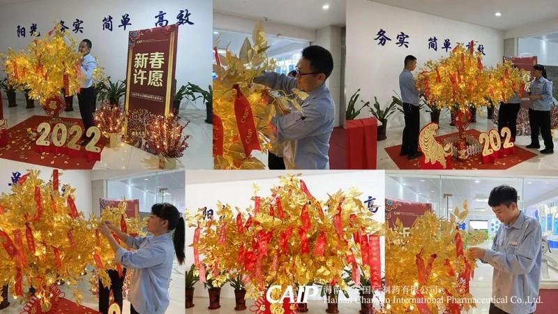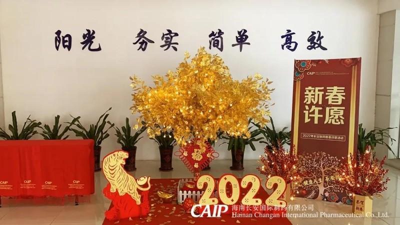 為了給長安人帶來濃濃年味,長安制藥推出了2022年新春許愿樹活動,精心裝扮的許愿樹出現(xiàn)在展廳門口,寓意著新年的祝福與勃勃生機(jī)。