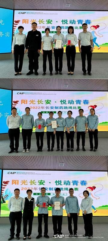 經(jīng)過緊張激烈的比賽,最終是行政部組成的“志今朝隊”獲得團(tuán)體比賽第一名,質(zhì)量控制部和EHS部組成的“還是那個隊”獲得團(tuán)體比賽第二名,產(chǎn)品制造部、藥物警戒科、物料管理部、研發(fā)部、質(zhì)量審計科組成的“繩彩飛揚(yáng)隊”獲得團(tuán)體比賽第三名。