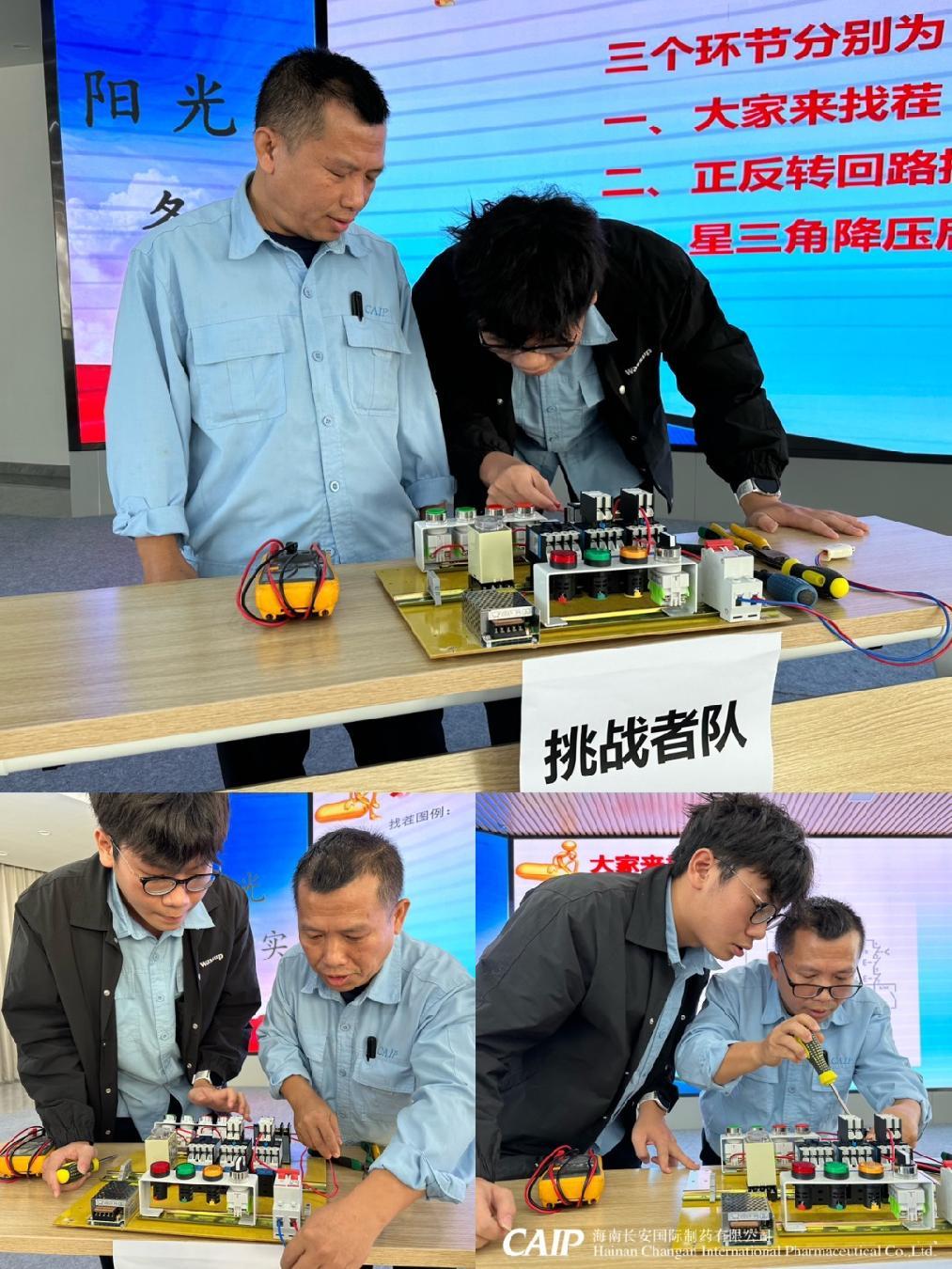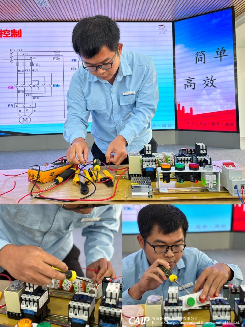 本次技能比武大賽以現(xiàn)場實際操作方式進(jìn)行,通過設(shè)備表象特征,判斷其故障原因,并在規(guī)定時間內(nèi)完成故障修復(fù)。一共分為三個環(huán)節(jié),分別是:大家來找茬、正反轉(zhuǎn)向路控制、星三角降壓啟動。