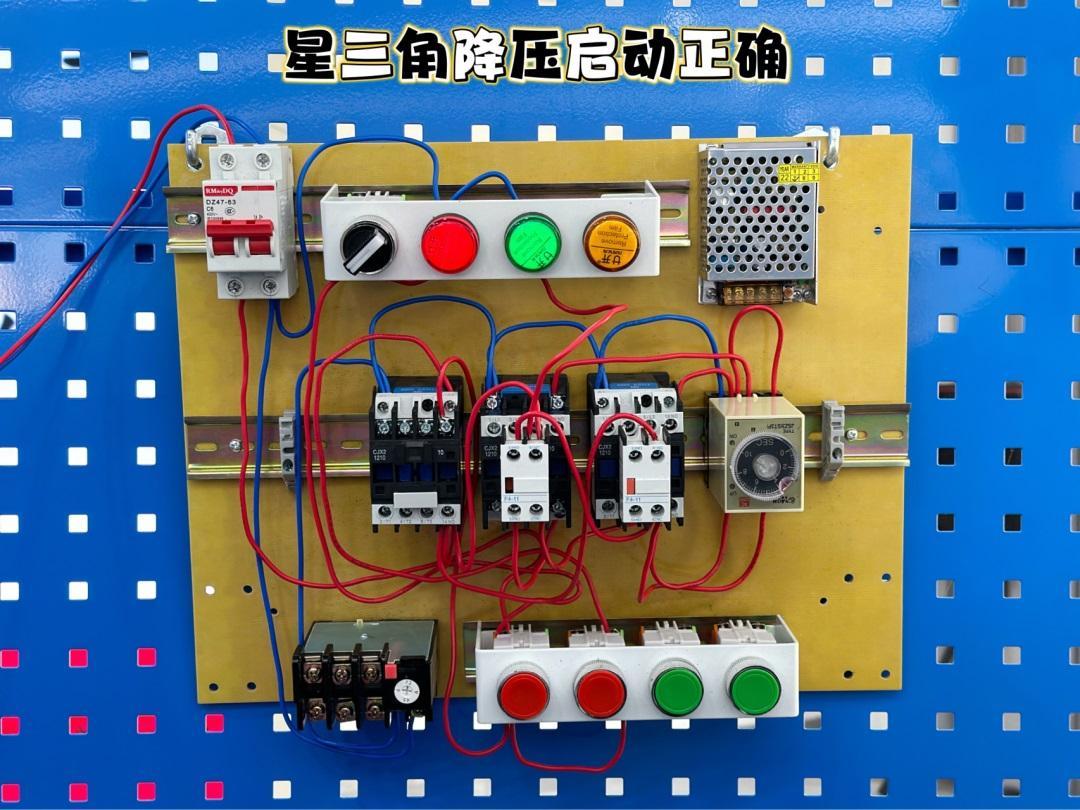 以4人為一組的團(tuán)隊賽,根據(jù)現(xiàn)場提供的電路圖,在規(guī)定的時間內(nèi)正確識圖接線,降壓啟動控制電路連接正確,按啟動鍵后,能正常按照星三角型啟動順序,并正常運行。