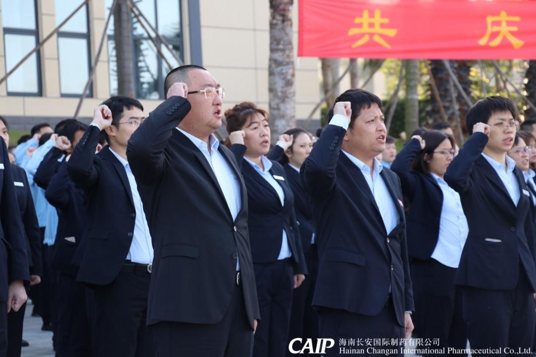 伴隨著嘹亮的國歌,當(dāng)鮮艷的五星紅旗、益佰制藥司旗、長安制藥司旗冉冉升起,全體員工莊嚴(yán)肅立,行注目禮。而后,長安制藥全體員工右手握拳過肩,用慷慨激昂的聲音宣讀公司員工誓詞,將新年開工的斗志和干勁兒,齊聲融入到宣誓當(dāng)中。