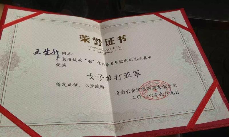 本次迎新羽毛球賽,各位選手賽出了風(fēng)格,賽出了水平,展現(xiàn)出了“友誼第一,比賽第二”的良好風(fēng)貌。通過球賽舉辦,希望各位新員工能更快的融入公司在海南長(zhǎng)安國(guó)際制藥這片舞臺(tái)上譜寫出最輝煌的明天!