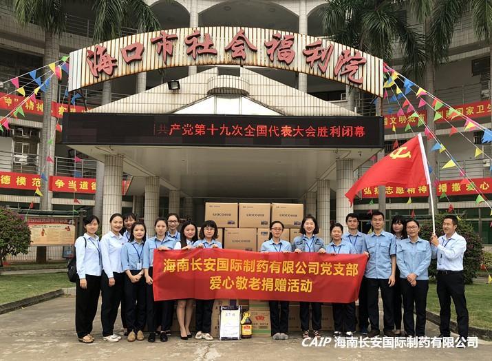 秉著強烈的社會責任心及社會責任感,提倡要為社會多做貢獻,是長安制藥一直以來的企業(yè)發(fā)展理念,在公司領(lǐng)導(dǎo)的大力支持下,長安制藥黨支部的配合下,特組織2017年10月31日前往??谑猩鐣@哼M行愛心敬老捐贈活動,各部門代表一早從公司出發(fā),為老人們送去了愛心慰問物品。今天,對所有參加活動的長安人來說,是個感動又難忘的一天。