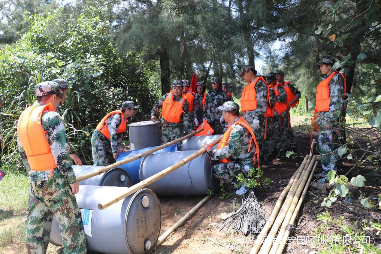 各隊伍利用僅有的道具,頂著烈日,分工協(xié)作搭建竹筏,目的是順利將午餐的食材和隊員們運到對面的無人島。在這個過程當中,大家克服了高溫下人體的承受極限,建立良好的合作意識,合理運用資源,掌握溝通技巧,充分體現(xiàn)出了團隊的合作及協(xié)調(diào)能力。